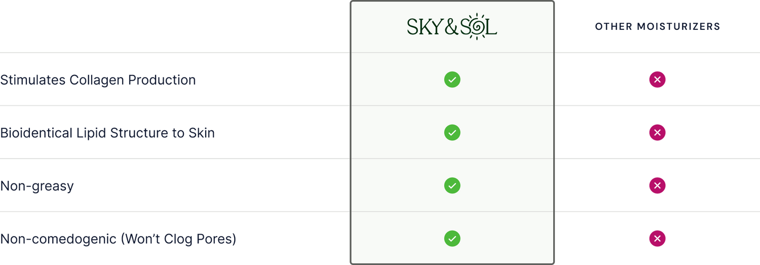 Sky and Sol sunscreen is specially formulated to be non-comedogenic, meaning itwon't clog your pores. In fact, tallow closely resembles the structure of the oilsnaturally produced by our skin, so it's readily absorbed and extremely beneficial.However, everyone's skin is different. We recommend doing a patch test beforetrying any new cosmetics.