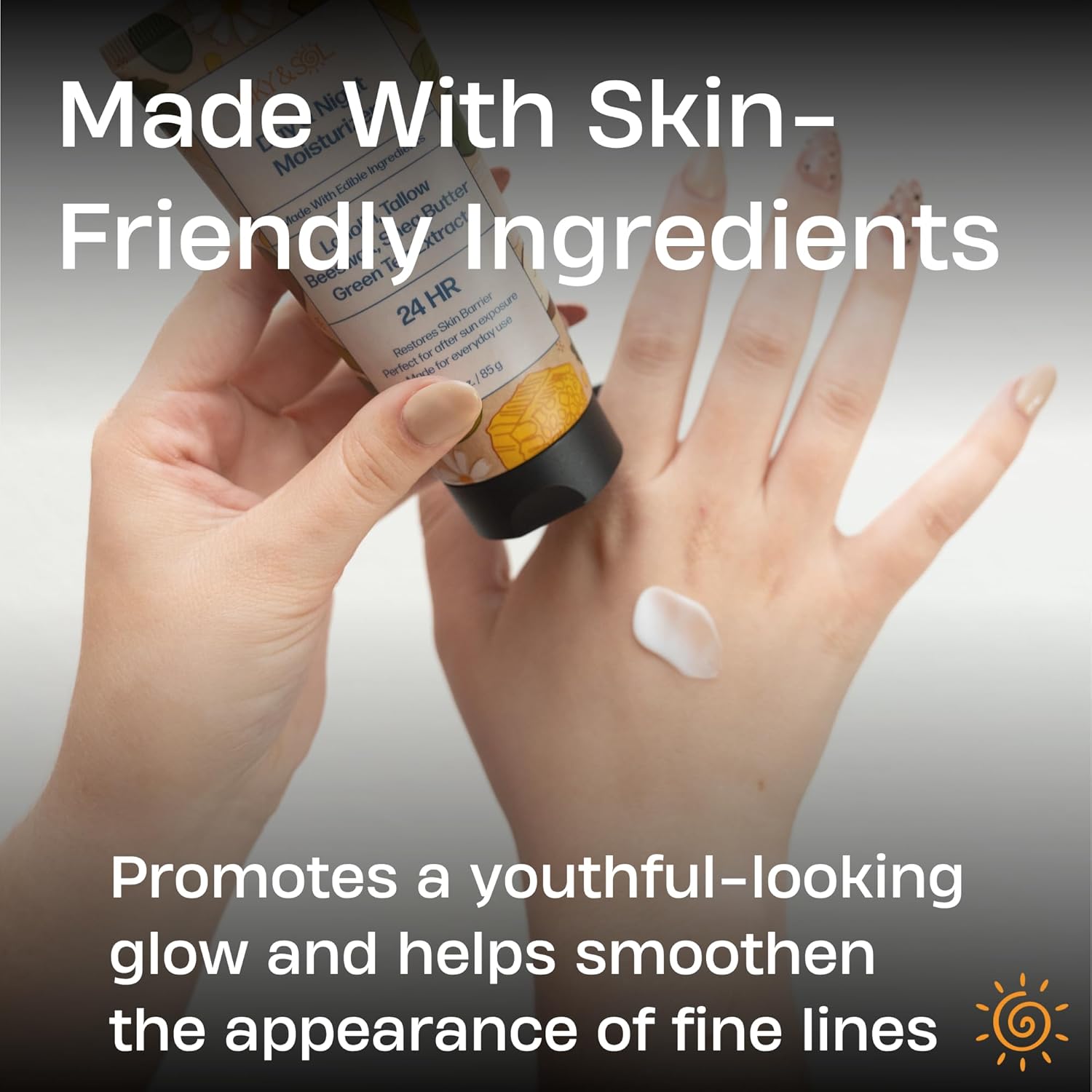 Your skin produces a unique blend of natural oils that’s tough to replicate—so we don’t try to fake it. At Sky and Sol, we formulated the Everything Cream with grass-fed beef tallow because its fat profile is bioidentical to your skin’s own lipids.
